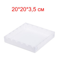 Коробка для печенья и пряников белая с прозрачной крышкой 200*200*35 мм RKD