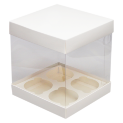 Коробка для 4 капкейков, БЕЛАЯ 160*160*100 с окном