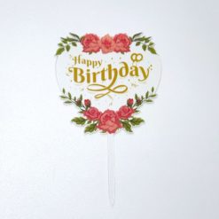 Топпер с цветами «Happy Birthday» прозрачный с золотой надписью, сердце TULA