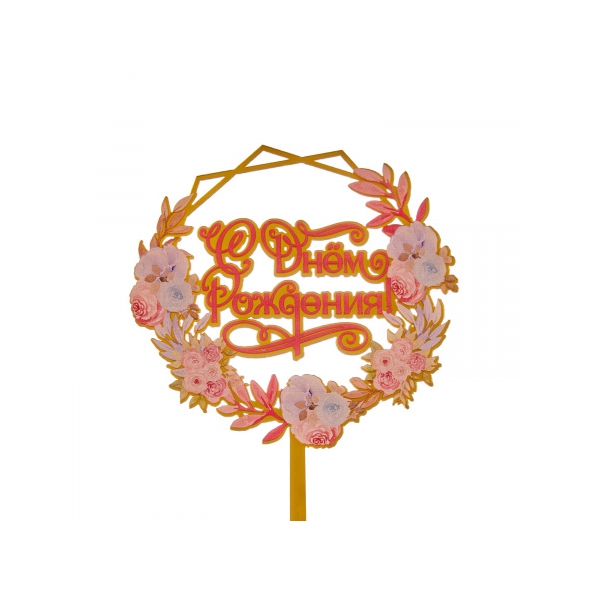 Топпер с цветами «С днем рождения» нежный букет TULA