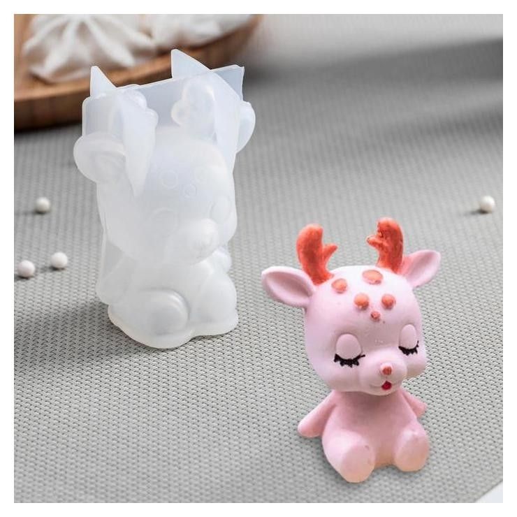 С помощью силиконовой формы можно создать фигуру Олененка , которая сможет стать самостоятельным подарком на новый год, детский праздник, день рождения или любое другое торжество. Перед применением форма должна быть идеально сухой. Аккуратно заполните форму необходимой массой и оставьте в холодильнике (или в прохладном месте) до полного затвердевания массы. Достаньте фигурку, если есть необходимость, то дайте просохнуть пару часов. Приступайте к окрашиванию фигурки по необходимости.