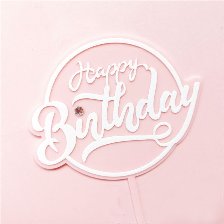 Топпер пластиковый с алмазом (розовый с белой надписью) «Happy Birthday» TULA
