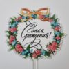 Топпер с цветами «С днем рождения» прозрачный с фиолетовой надписью TULA