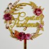 Топпер с цветами «С днем рождения» розовый букет, квадратный TULA
