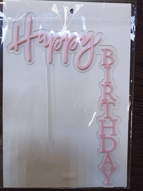 Топпер уголок «Happy Birthday» прозрачный фон с розовой надписью TULA