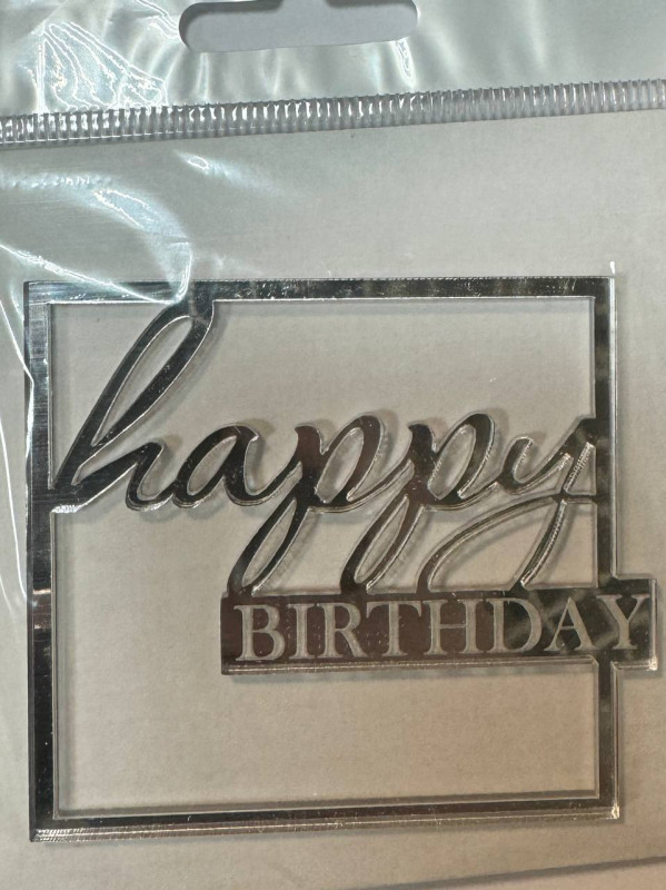 Топпер Happy Birtnday в квадрате, на бок торта, 7*8см, серебро ТСК113