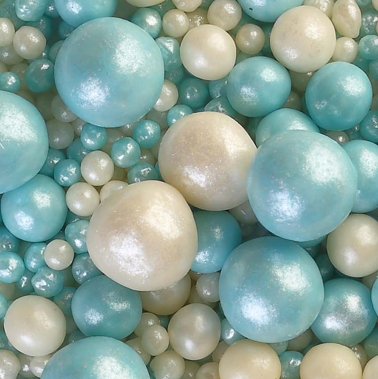 цена за 100гр Драже зерновое в кондитерской глазури (195, Жемчуг бирюза, серебро) TULA