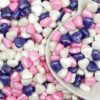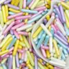 Состав: сахар, кукурузный крахмал, пшеничная мука, мальтодекстрин, патока, масло пальмовое, сухое молоко обезжиренное, эмульгаторы, загуститель гуммиарабик Е414, ароматизатор, соль, ванилин, пищевые красители (в зависимости от цвета)